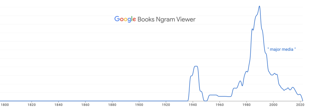 Meanwhile, the expression “major media” seems to have come and gone—